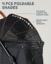 Adjustable Canopy + Sun Shades, Adjustable Handle, Foldable + Waterproof, All-terrian Swivel Wheels, Storage Organizer |