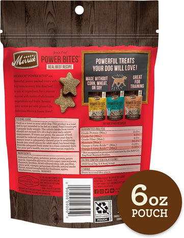 - Merrick Power Bites Real Beef Recipe, Natural With Added Minerals Soft and Chewy Real Meat Dog Treats Recipe, A Grain Free Snack For Adult Dogs