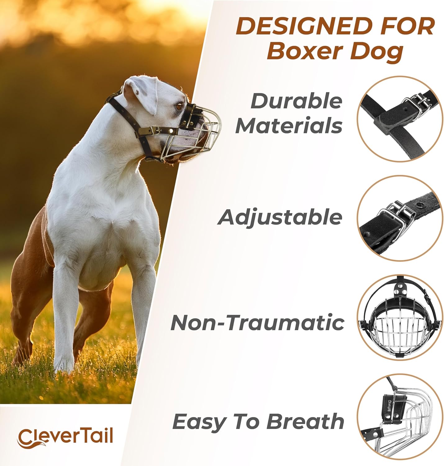 - Adjustable Leather Straps: Benefit from the adaptable leather straps on CleverTail muzzle for Boxer dog breed. Built for a secure fit, this muzzle for biting dogs stays firmly in place and is difficult to remove.
