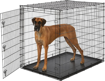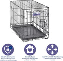 iCrate single-door dog crates by MidWest Homes for Pets are the Inclusive Home Training System designed completely around the safety, security, and comfort of your dog. Features include safe and secure slide-bolt latches, rounded corners, and a removable, washable plastic pan for easy cleanup in the event of an accident.