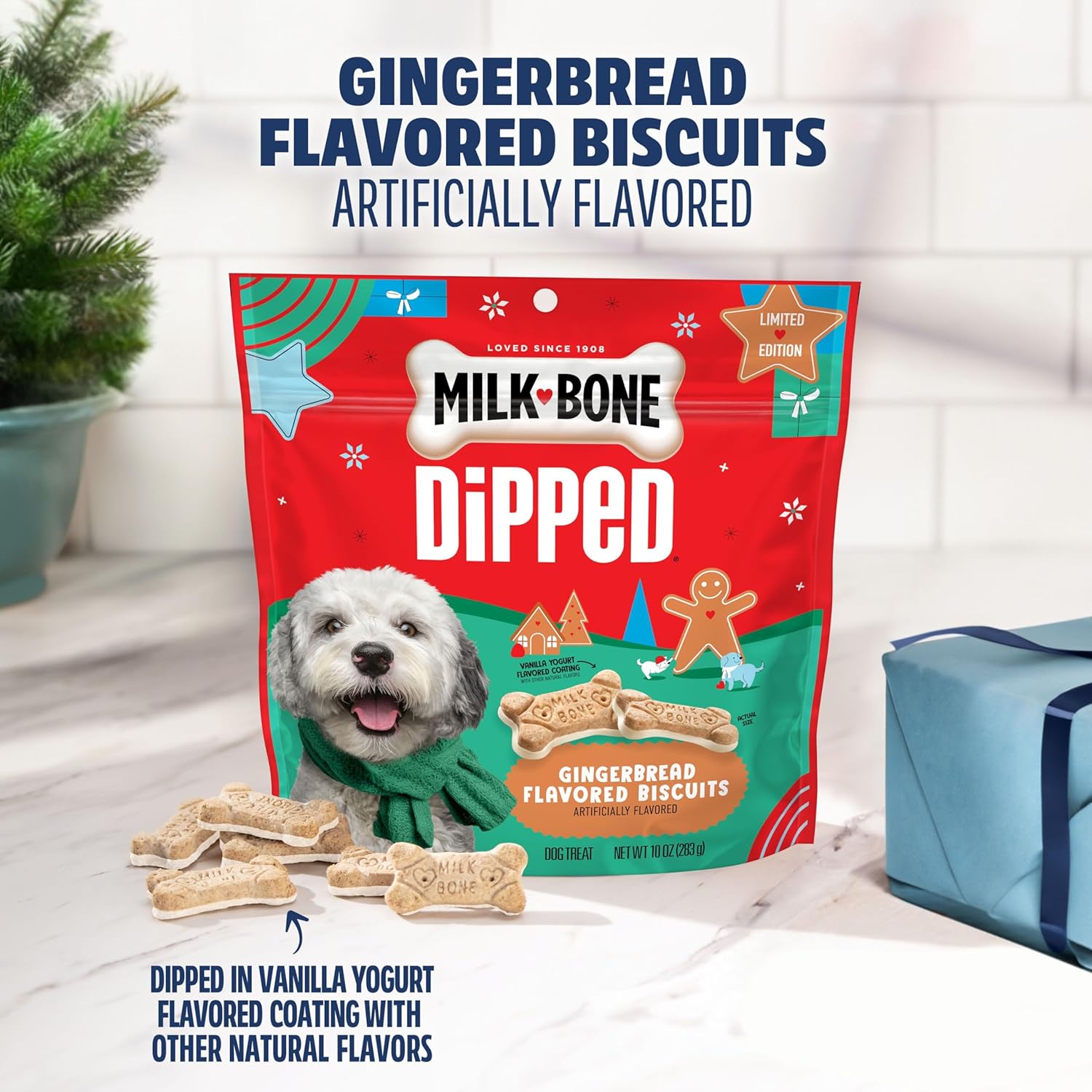 - CONTAINS: One 10-oz. bag of limited-edition Milk-Bone Dipped holiday dog treats