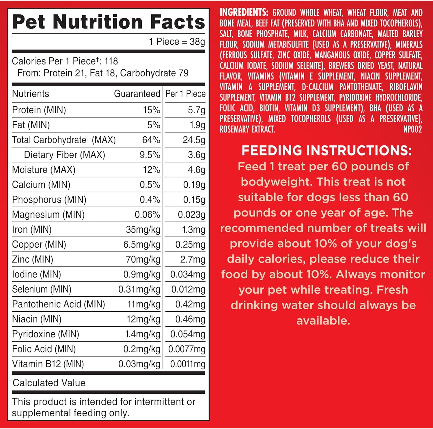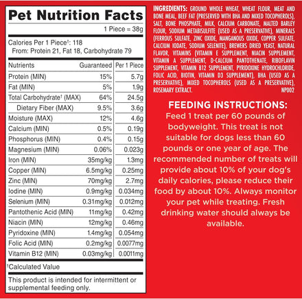 Give your dog tasty fun every day with Milk-Bone Original Dog Biscuits. These large dog treats deliver that irresistible, classic crunch and tail-wagging meaty taste dogs can’t get enough of in every bite. But the great taste isn’t the only thing to love about these dog snacks. Their crunchy texture helps clean teeth and reduce tartar build-up to make those sloppy doggy kisses even more enjoyable. Plus, they’re made with more than 12 vitamins and minerals, and they’re produced in Buffalo, New York, USA. Add a box to your cart, and fill every day of doglife with more love (and deliciousness).