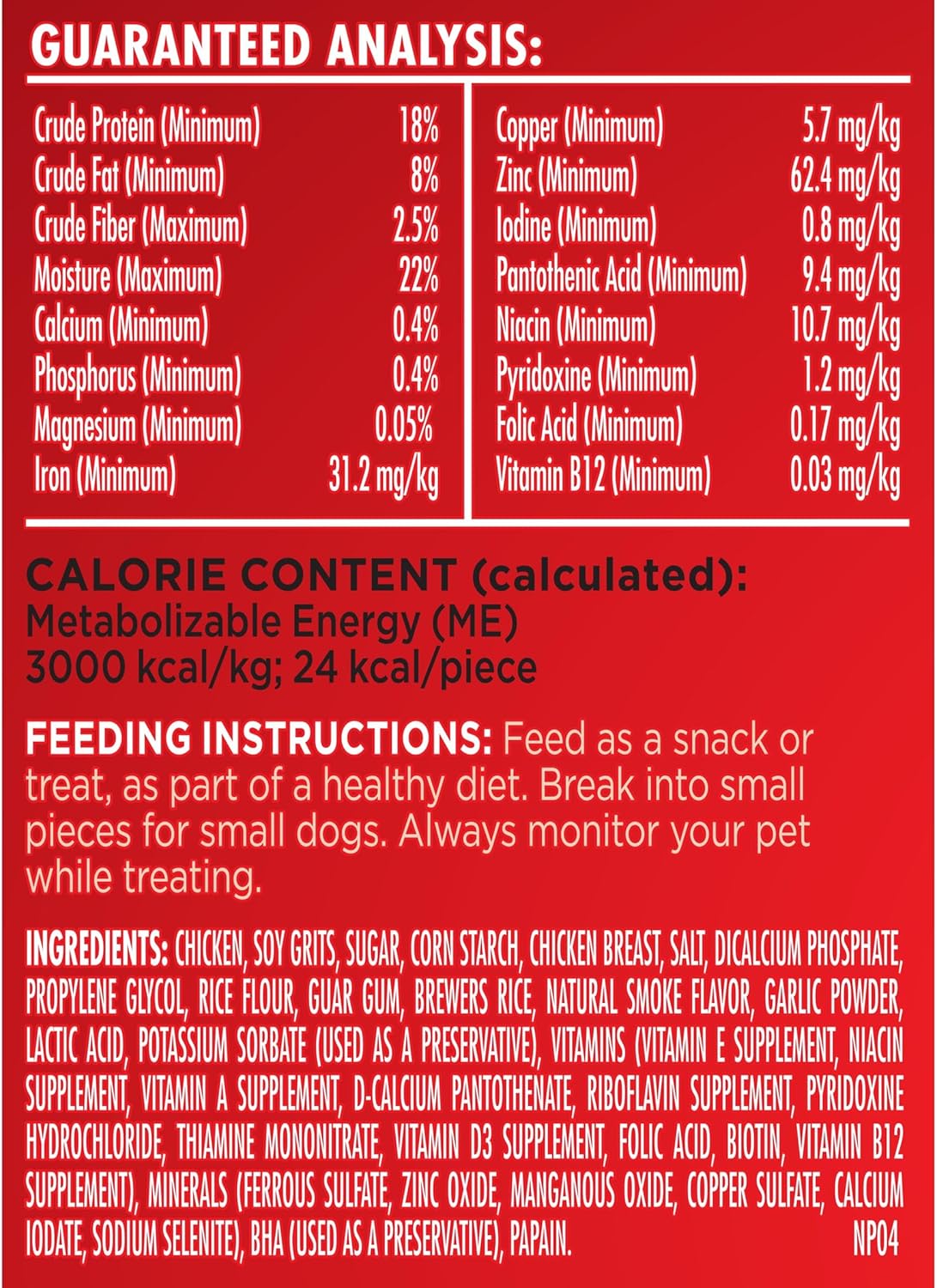 - Contains one (1) 25-ounce container of Milk-Bone Soft & Chewy Chicken Recipe With Chicken Breast dog treats