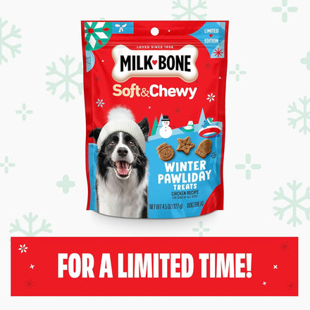 • Contains one (1) 4.5-ounce bag of limited-edition Milk-Bone Soft & Chewy Dog Treats