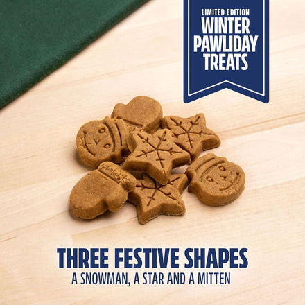 • Winter pawliday treats in festive snowman, snowflake and mitten shapes