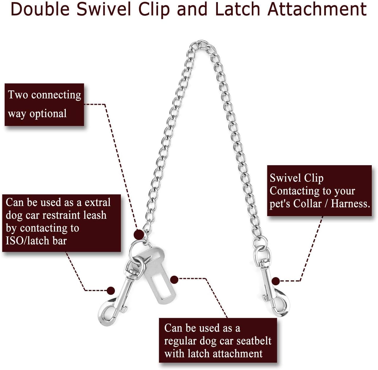 - MULTI-CONNECTING WAY: double swivel clip and latch attachment design, you can connect it to your car's regular with the nap OR you can connect it to latch bar in your cars back seat creases as a extral pet tether. So the passager and your pet can use it in the same time without influence.