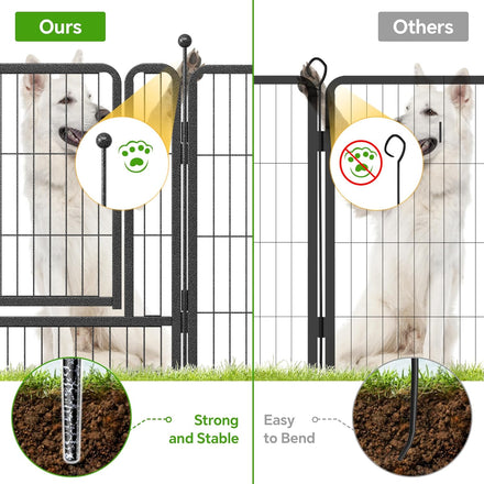 - 【Safety Dome-Top Connection Rods】: The dog playpen features reinforced steel connection rods with dome-shaped tops—stronger than standard connectors for wobble-free stability. The pointed ends install easily in soil/grass, while the smooth rounded tops prevent paw injuries if dogs try to climb. A safer, sturdier choice for energetic pets.