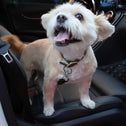 - The tether attaches easily to your car's seatbelt system and keeps your pet restrained and secure. This also allows your dog to sit, stand or lie down comfortably in a car without distracting the driver.