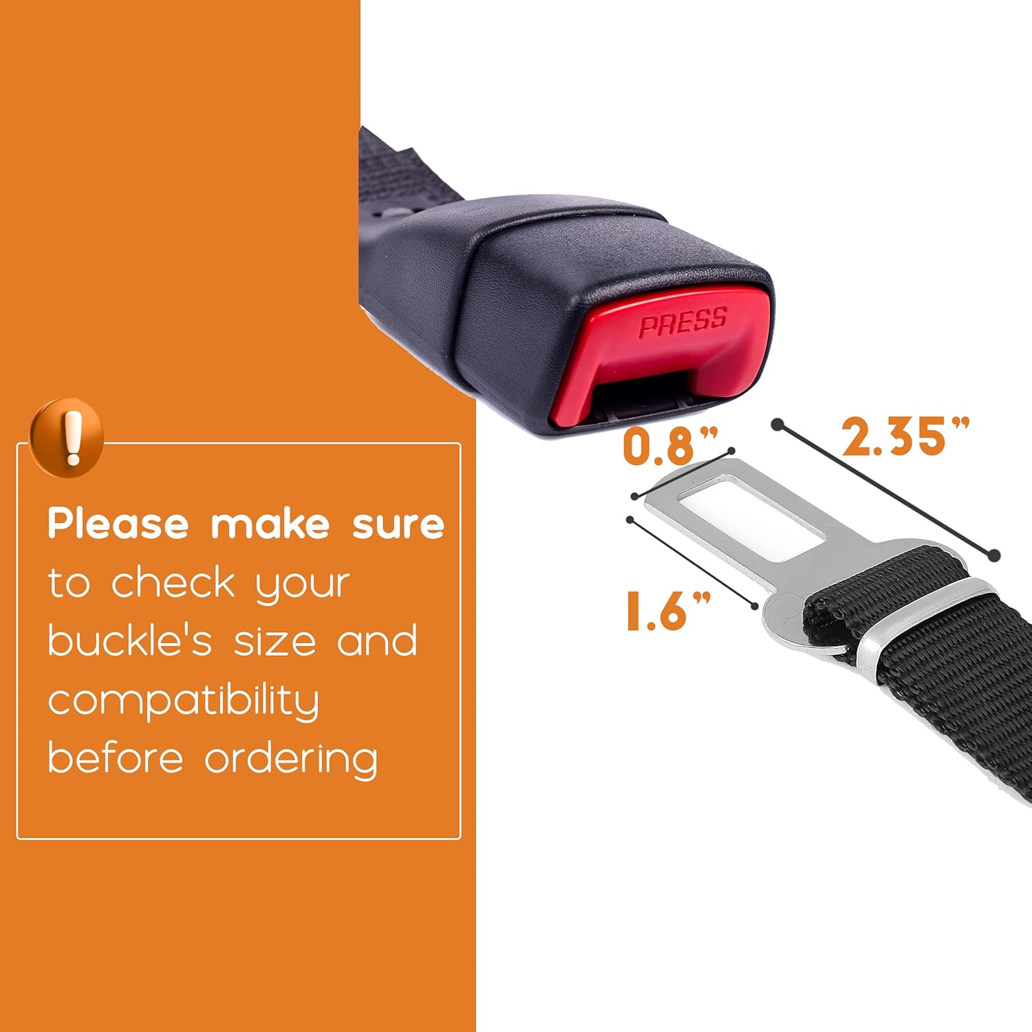 - The width of dog car seat belt's clip is 0.8", which is compatible with most vehicles. Please make sure to check your buckle's size and compatibility before ordering.