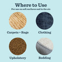- FOR HARD-TO-CLEAN SOFT SURFACES: Made to be used on carpets, rugs, upholstery, bedding, and clothing
