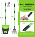 - ADJUSTABLE ERGONOMIC LONG HANDLE: Don't want to keep stooping to pick up piles all over the yard? Clean up your pet’s messes from a comfortable distance with the 36.6-inch extendable handle. Both the bin and the rake of this dog pooper scooper comes with three stainless steel adjustable long handle, can reach up to 36.6"long. You can just simple push in and lock on to assemble it, no tools needed.