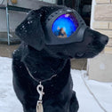 Wide helmet and goggles can stay in the dog's head pretty well.