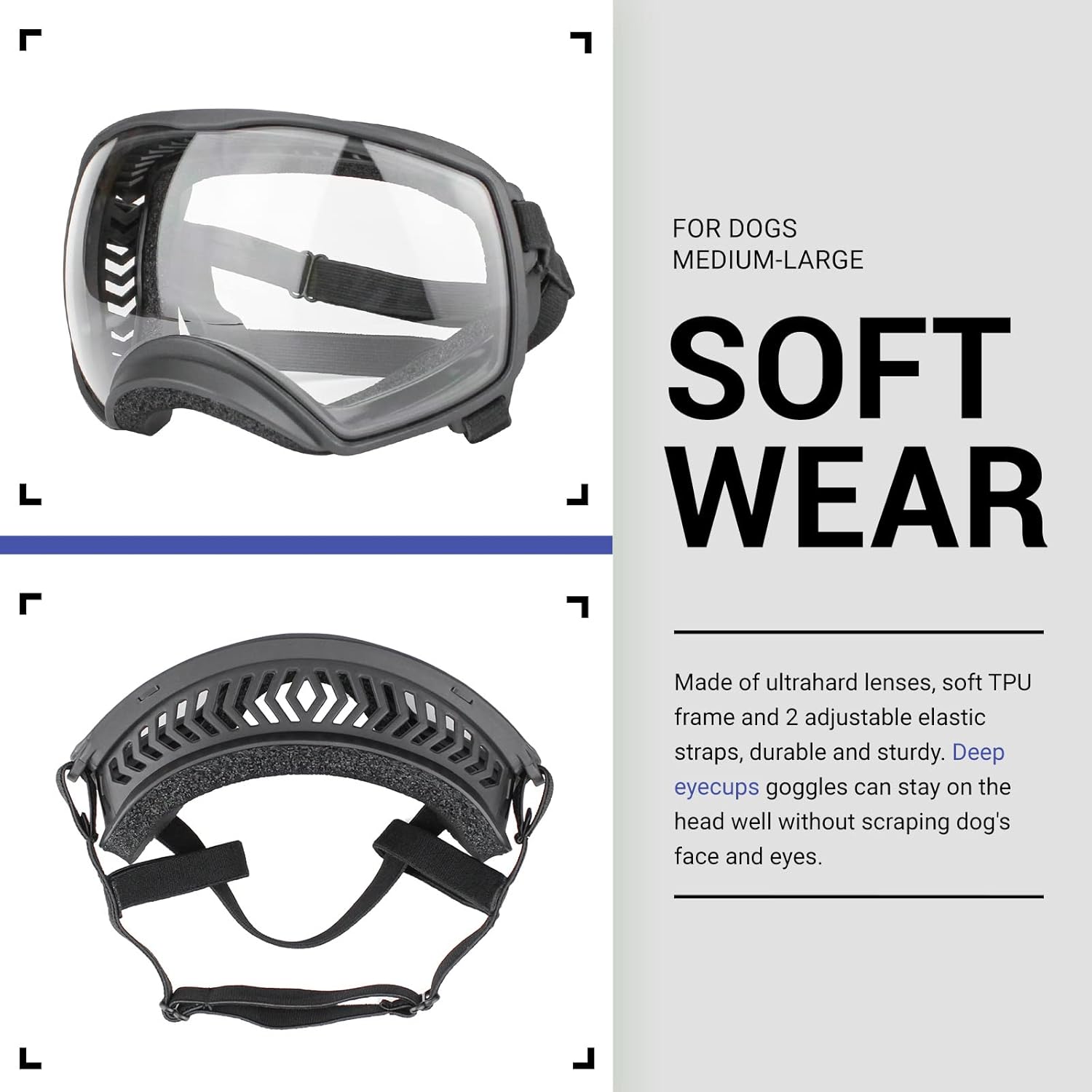 - Multi-Functional Protectors: Anti-UV, Windproof, Snowproof. These doggy goggles can be used anytime throughout the year that protect dog eyes from dust, debris and dirt, also offers a perfect balance of shade and eye protection, they doesn't interfere with doggie vision and provide great UV, driving windproof and skiing protection.