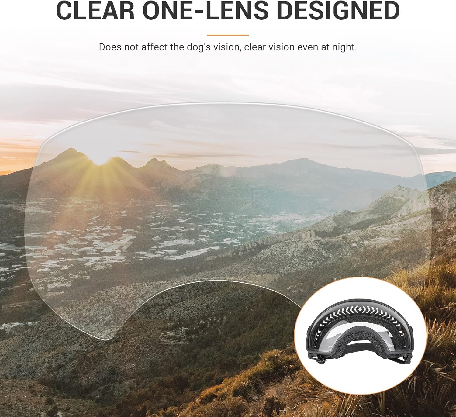 - Transparent Lenses: Clear dog glasses with full range frame, remove the original contour of ordinary glasses for a wide range of view. Especially for dogs with weaker vision. Lenses have passed UV400 and impact testing.