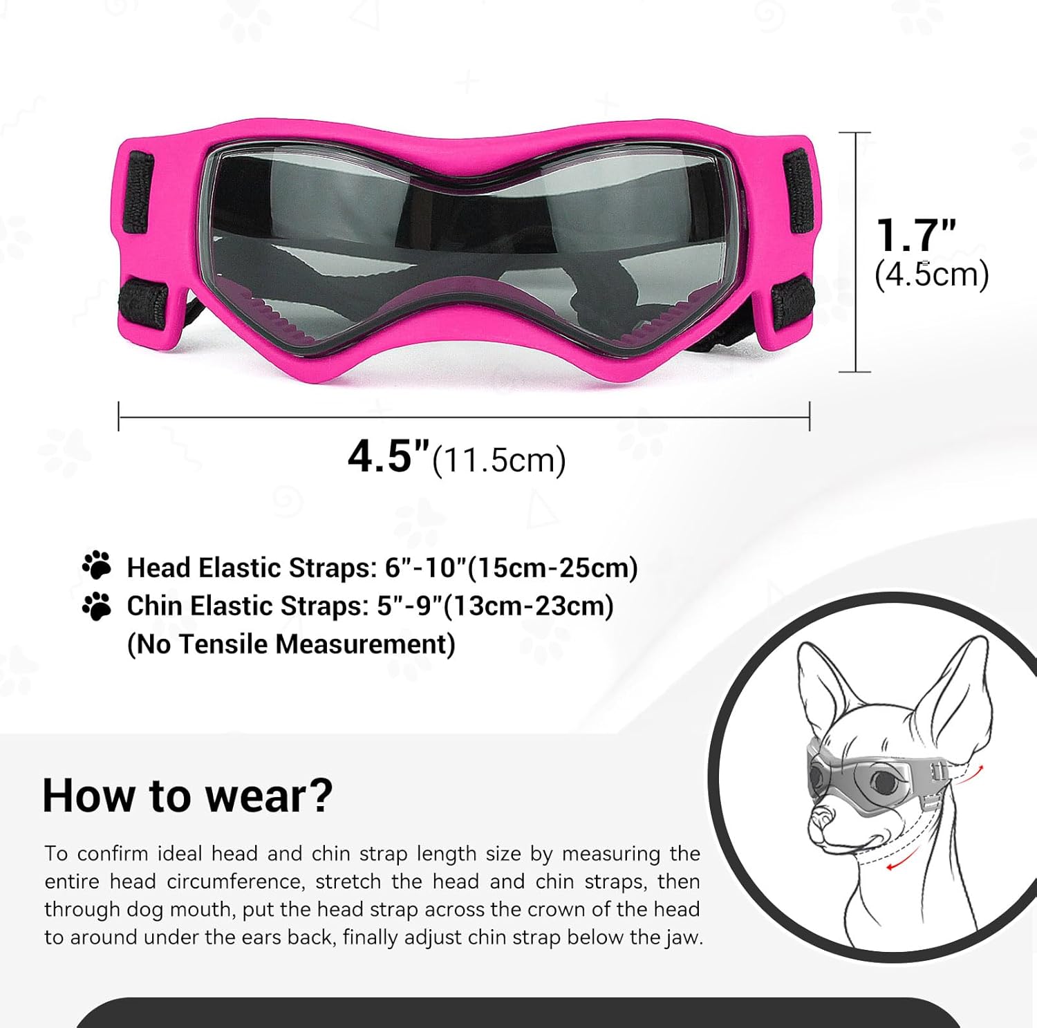 Namsan Dog Goggles Small Breeds, UV Protection Dog Glasses for Small Dogs, Puppy Sunglases Windproof Dustproof Driving Eye Protection, Adjustable, Cool Pink