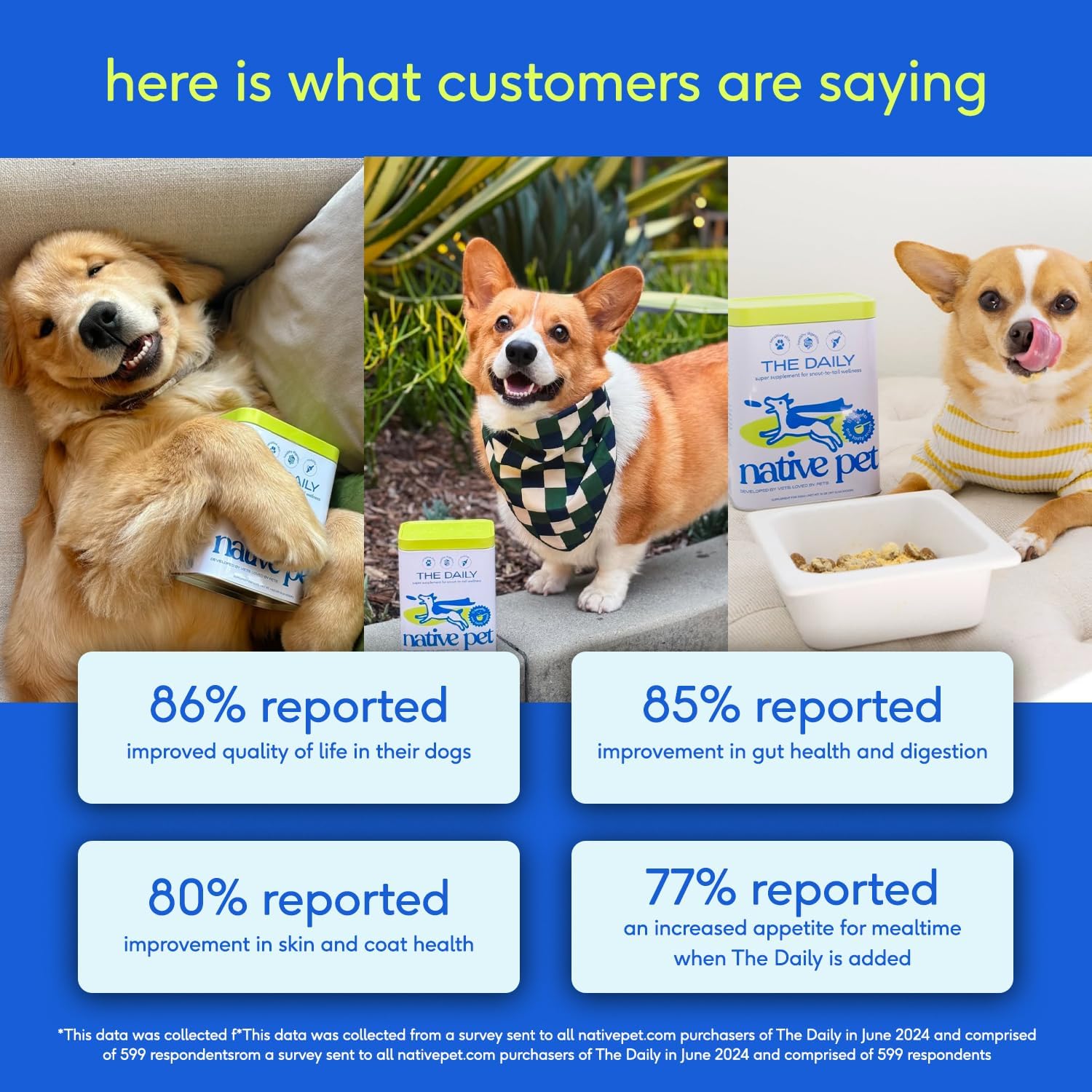 The Daily is formulated as a delicious powder (vs. a soft chew) that takes #1 in doggy taste tests. Easy feeding for you, tons of tail wags for them.