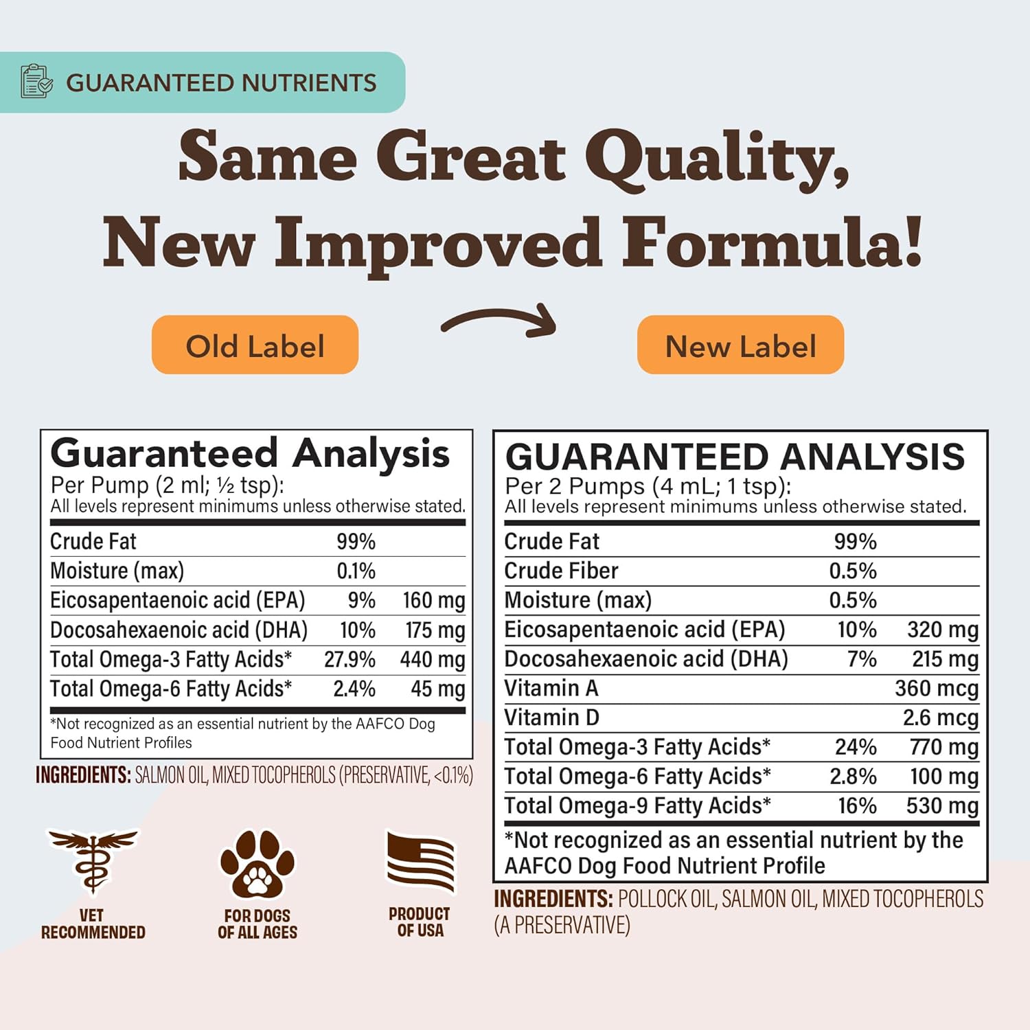 - DAILY FOOD TOPPER DOGS LOVE: Even picky eaters enjoy this tasty salmon oil food topper. Just pump on meals to boost flavor and nutrition no pills required. Our organic salmon oil for dogs is safe, palatable, and pairs perfectly with other holistic dog supplements to support skin, joints, and coat from the inside out.