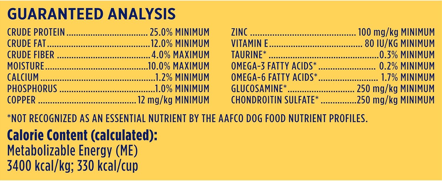 - STRONG BONES & HEALTHY JOINTS: Calcium, copper and essential nutrients help support strong bones and natural sources of glucosamine and chondroitin (from chicken meal) plus vitamin E help support healthy joints
