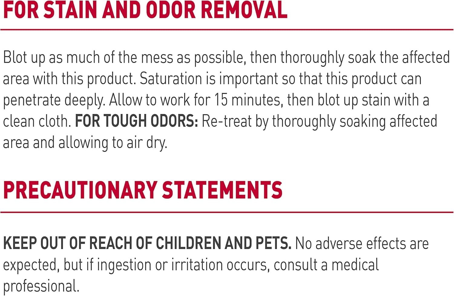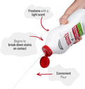 - SPOT STAIN & ODOR REMOVER: Begins to break down and remove stains immediately on contact.