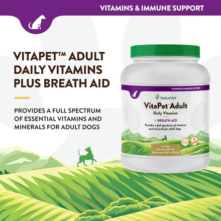 - Nature vita pet adult plus breath aid soft chews for dogs is formulated specifically for adult dogs. Provides a full spectrum of essential vitamins, minerals, amino acids, and fatty acids to help maintain general health while promoting fresh breath.