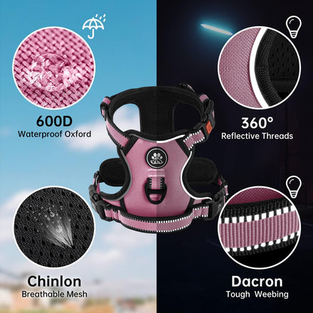 - 【EASY ADJUSTMENT】This no choke dog harness design with 4 fully adjustable straps (2 shoulder and 2 chest straps) which can be adjusted to the most fitting size, prevents the dog from breaking free while maintaining maximum comfort