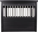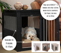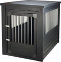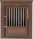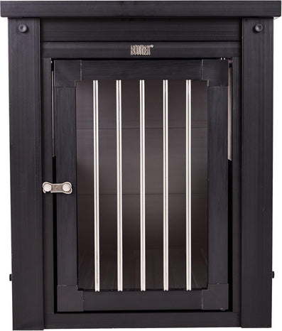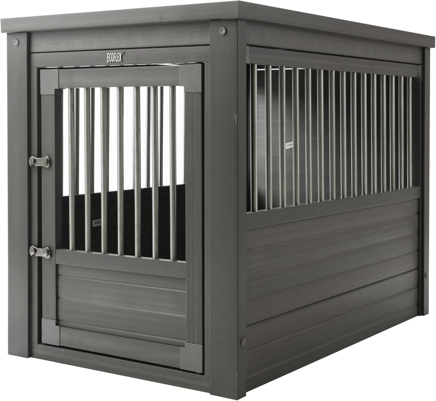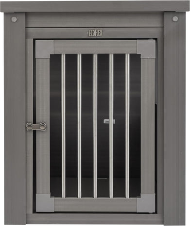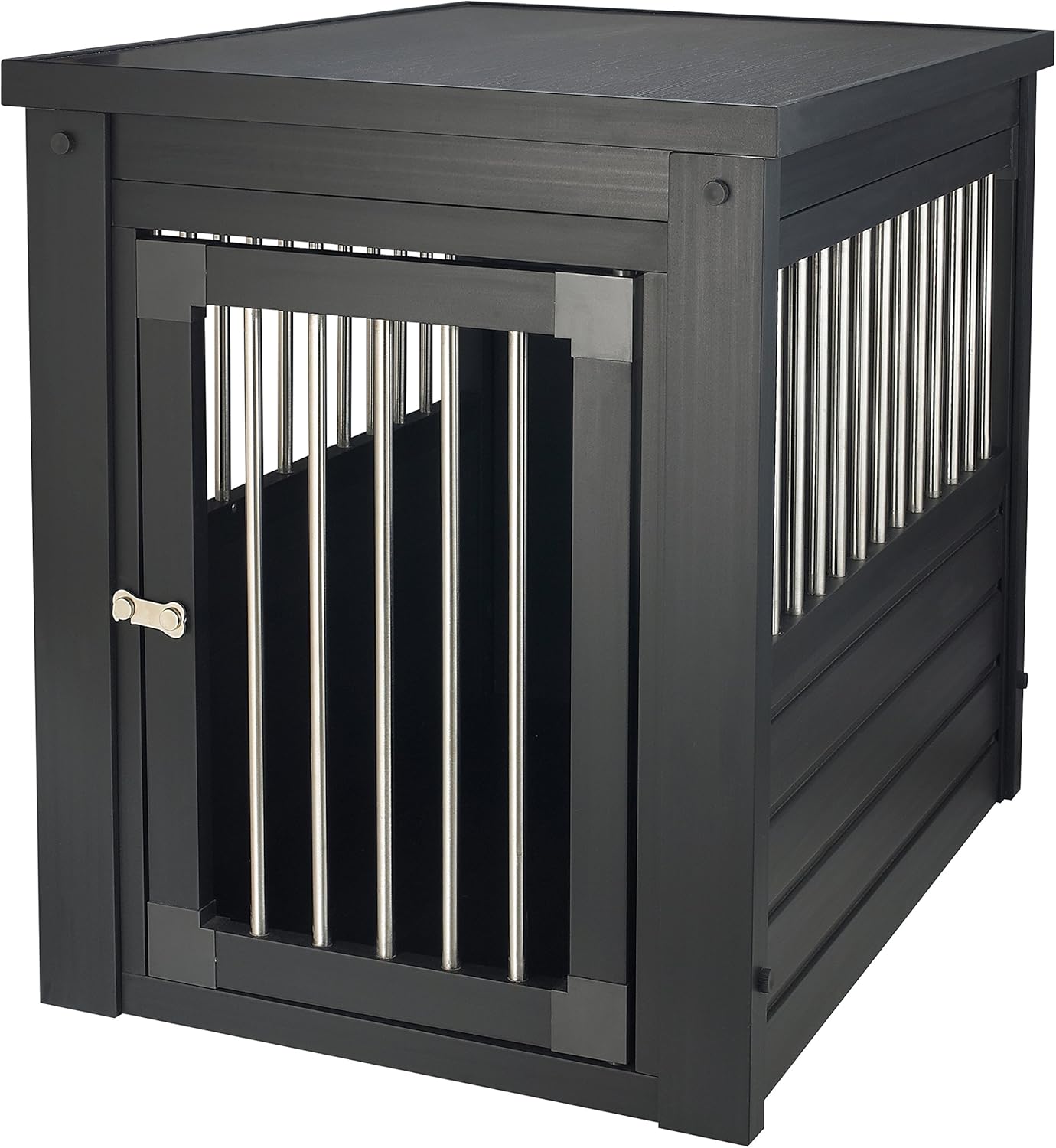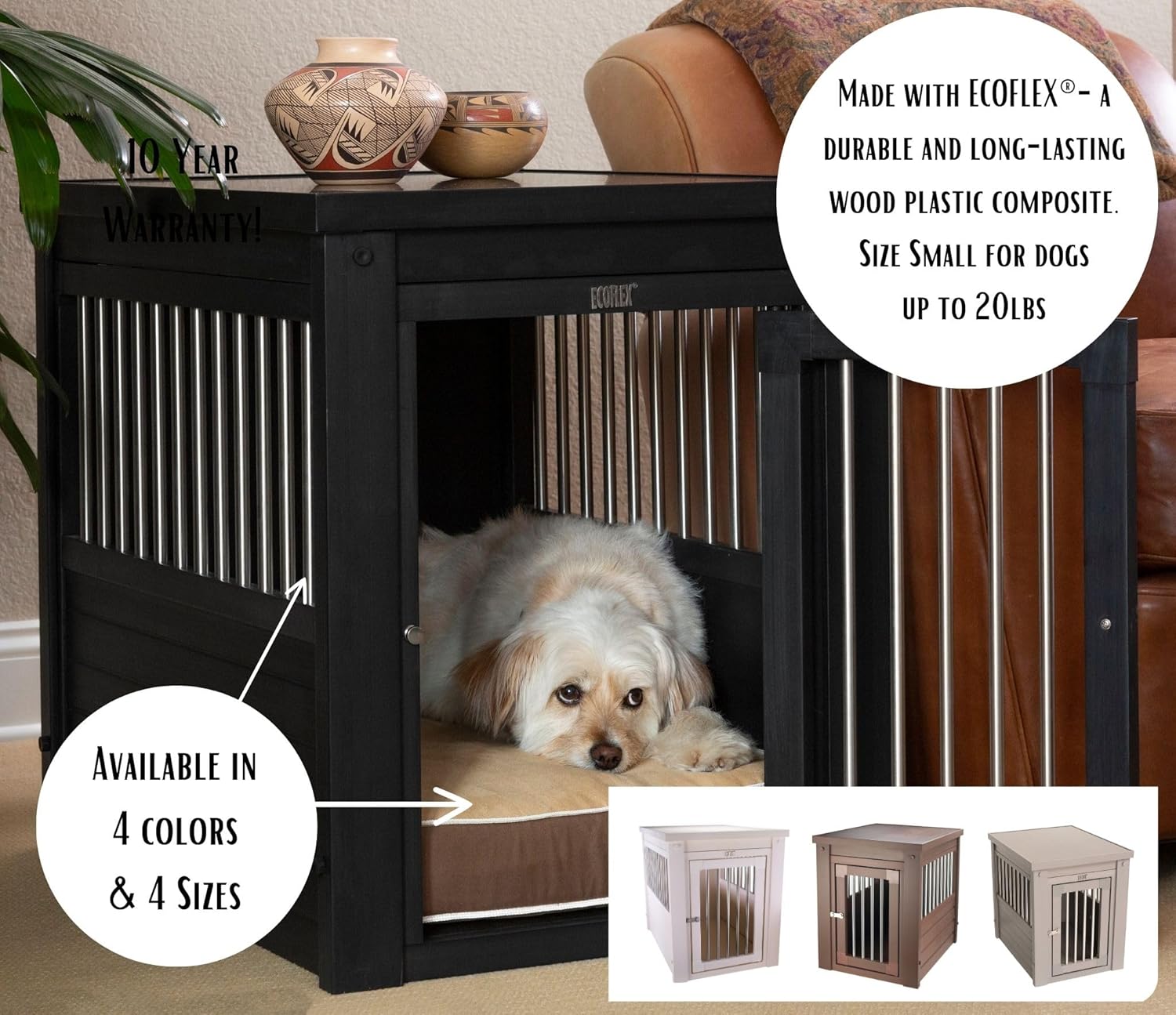 This ECOFLEX Dog Crate End Table is the perfect place for your pet when they are indoors. This ECOFLEX Crate End Table can easily do double duty in many houses where it can serve as an end table in the family room, bedroom or living room. Made of ECOFLEX material. ECOFLEX is a proprietary formula that incorporates reclaimed wood and plastic into the material that allows the product to be and a great value as it will outlast most other products. Can be painted to coordinate with your other furnishings and inspire your pet style. Removable table top for easy cleaning. Color will never fade. Front door latches securely and cannot be accidentally opened. Small and Medium crates have one secure latch. Large and Extra Large crates have two secure latches. Crates are made for dogs that are familiar with crates and are less likely to chew. Spindles made of stainless steel tubing. Please note that any crate that isn’t 100% wire or metal has the ability to be chewed. This ECOFLEX Dog Crate melds form and function into a crate that can double as a piece of your home décor. Available in four sizes. Small for dogs up to 20 lbs. Medium for dogs up to 50 lbs. Large for dogs up to 80 lbs. X-Large for dogs up to 100 lbs. This product may not be a good fit for dogs that suffer from anxiety.