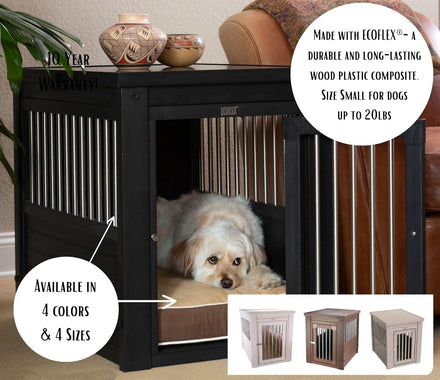 - [For Your Pet] Our New Age Pet ECOFLEX Dog Crate End Table is the perfect place for your pet when they are indoors. This ECOFLEX Crate for medium dogs, up to 50 lbs., and made with durable and long-lasting wood plastic composite [ECOFLEX] that’s sure to last.