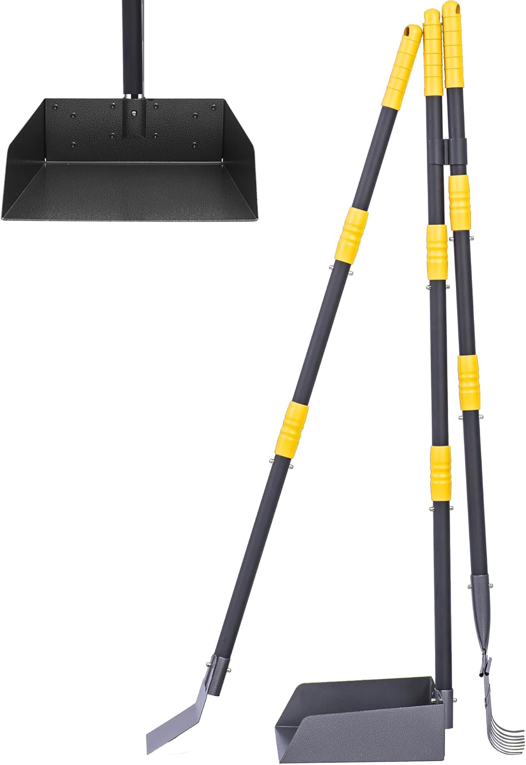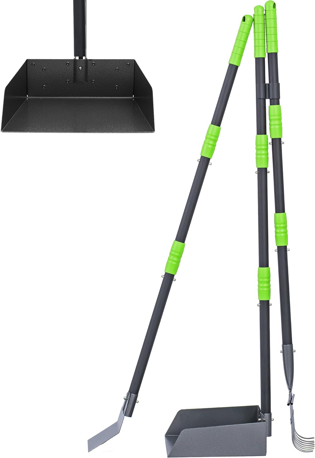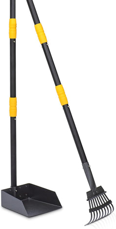 - Full-featured Cleaning Kit: Include a set of tray and rake. You can clean efficiently the pet poop in grass, courtyard, flat and other places with them. Upgrade Clip-on Interlocking ensures the connection of handles is more reliable to prevent spinning or easily loose off.