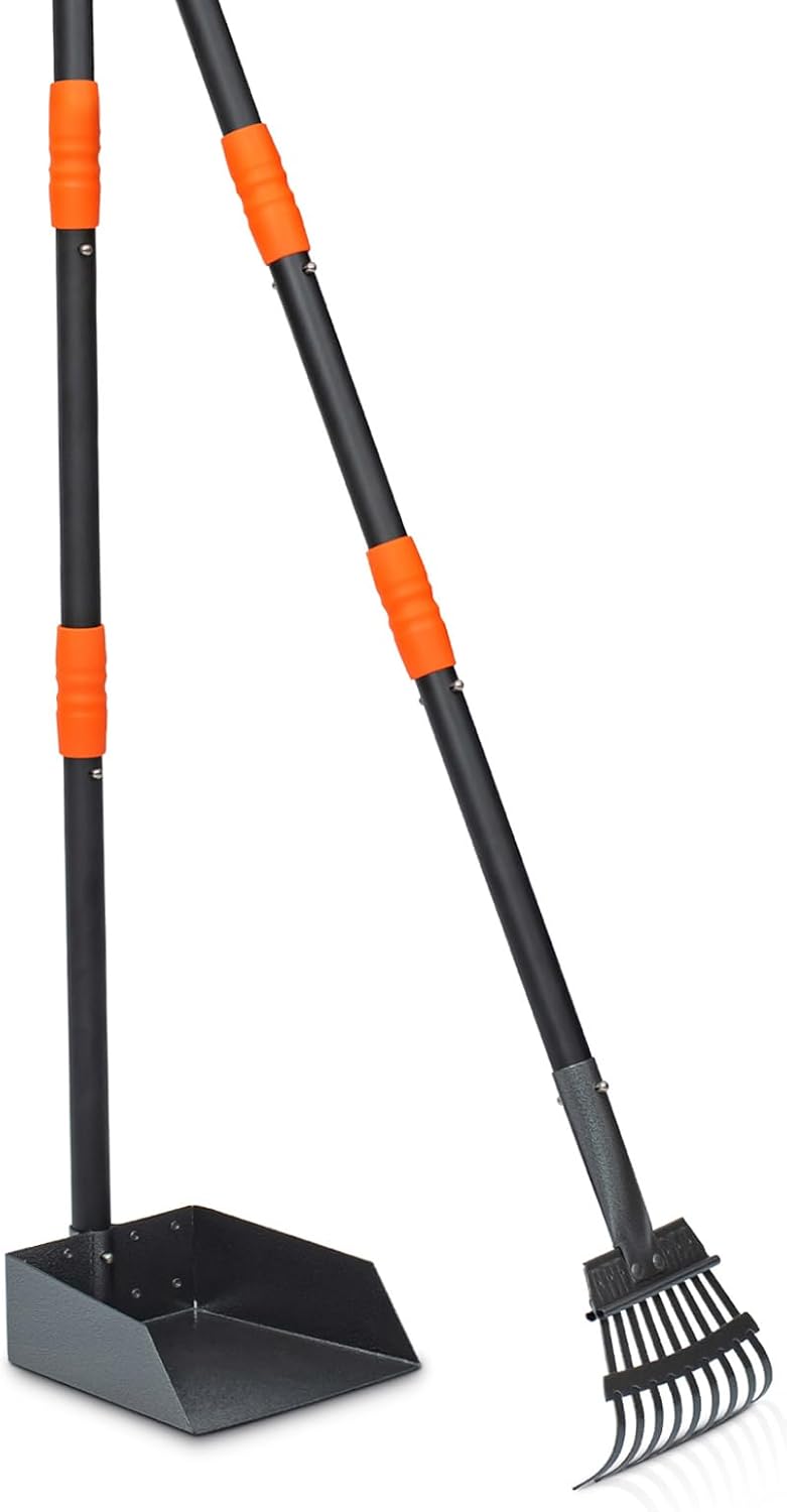 Niubya Pooper Scooper for Dogs, Metal Poop Scooper Tray and Rake Set with Adjustable Long Handle, Dog Pooper Scooper for Pet Waste Removal