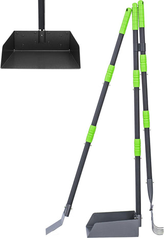 - Easy to clean and Store: Comes with a non-stick surface that makes cleaning a breeze. Treated with non-stick coating. This poop scooper set is very easy to clean, just hose off when the chores are done. The handle can be easily detached to make storage easy and also save space.
