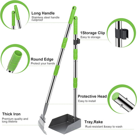 Niubya Pooper Scooper for Dogs, Metal Poop Scooper Tray and Rake Set with Adjustable Long Handle, Dog Pooper Scooper for Pet Waste Removal