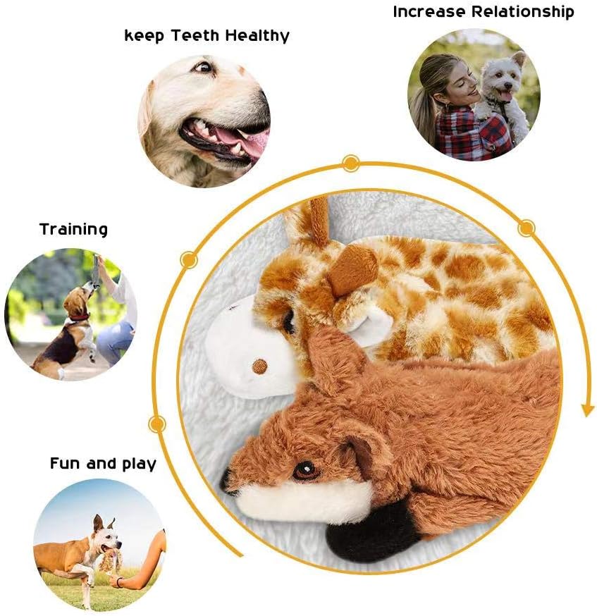 Two squeakers inside: The toys have squeakers in both head and tail that will attract the dog's attention. The funny squeakers with hard-to-resist crunchy paper inside will motivate their natural hunting instinct and encourage them to come back for more. Suitable for big to medium size toys.