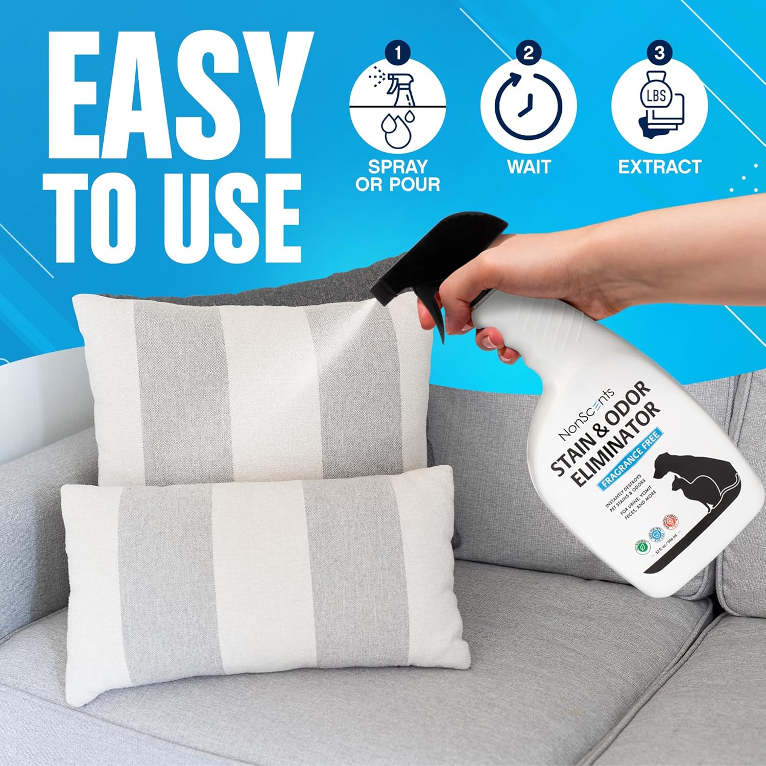 NonScents Stain & Odor Eliminator Spray for Strong Odor - 32 oz - Pet Odor Eliminator for Home - Carpet Stain Remover for Cats and Dog Pee - Cat Urine Destroyer - Carpet Cleaner Spray