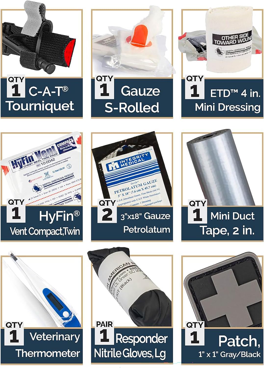 - Contains equipment for treating penetrating, blast or other traumatic injuries in the line of duty