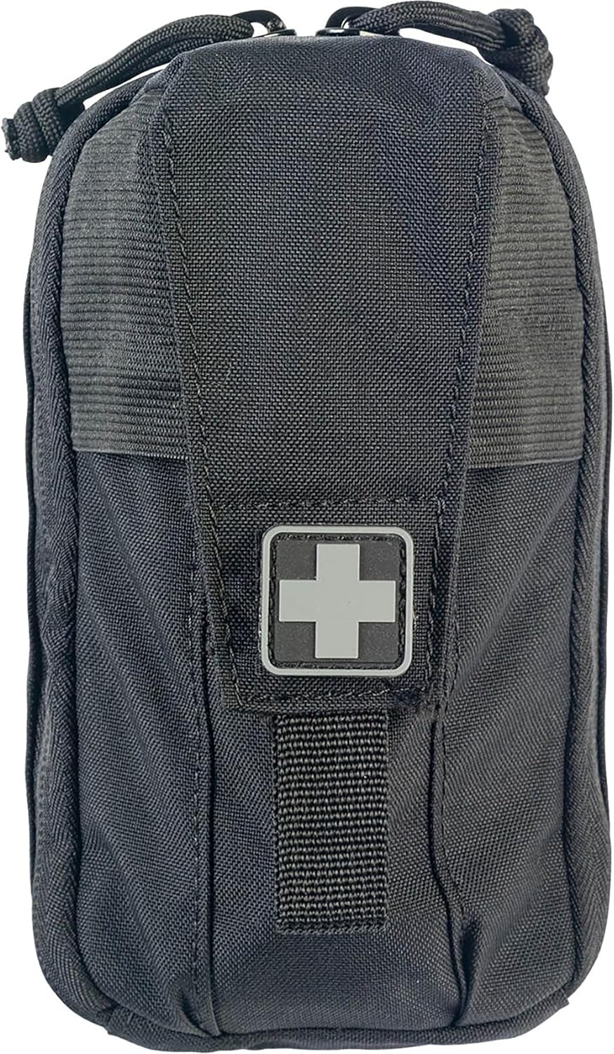 One of NAR's most compact First Aid Kits empowering K9 handlers with rapid one handed access to your tourniquet without ever having to open the full kit! The K9 Handler ROO M-FAK, one of North American Rescue's most compact Mini First Aid Kit platforms, was designed with versatile, multi-use options for delivering immediate critical care in the treatment of penetrating, blast or other traumatic injuries for K9s and their handlers in the line of duty. Despite its reduced size, this kit comes fully loaded with the critical medical equipment to address K9 emergencies from major bleeding to bloat or heat injury. The K9 Handler ROO M-FAK's super compact, 500 Denier nylon bag features a unique front tourniquet pouch that easily opens with the pull of a tab for rapid one handed access to your tourniquet without the need to open the full kit. Multiple elastic loops on the interior allow for secure gear organization, while it's rugged exterior includes a MOLLE style attachment for mounting in the standard vertical position as well as a 3 in. internal sleeve that accommodates horizontal attachment to your duty belt. Also included is a 1" PVC Med Cross Patch for convenient identification.