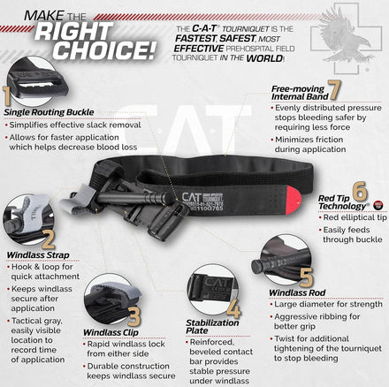 - Features rapid, one-handed access to your tourniquet from an easy-to-open front pouch allowing the C-A-T to be used as a true one-handed tourniquet if needed