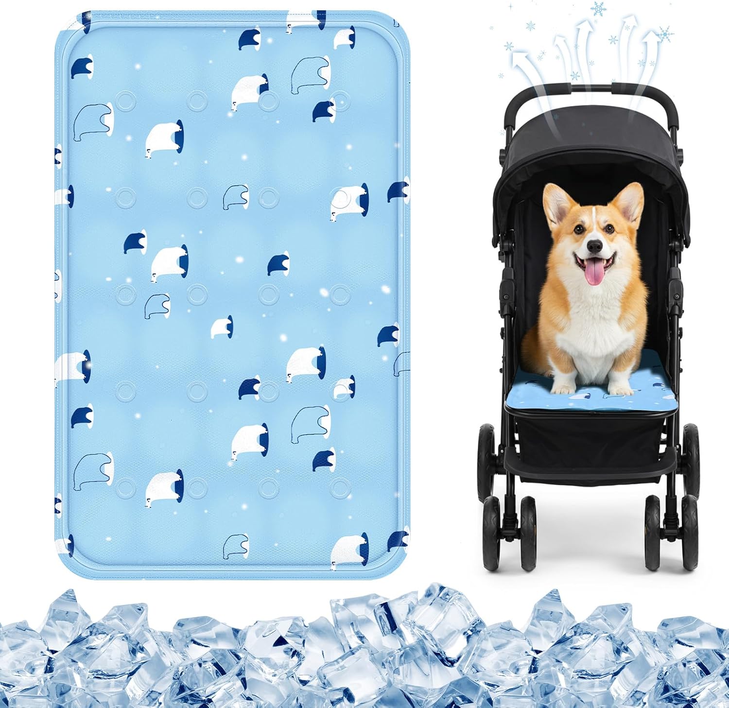 - Gentle Cooling Gel Technology: gel infused interior provides lasting coolness in the hot summer; Chill the cooling stroller mat in your fridge for 5 minutes before use to extend its cooling effect; This dog cooling pad maintains comfortable temperatures longer during hot days or active outings