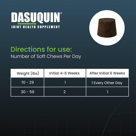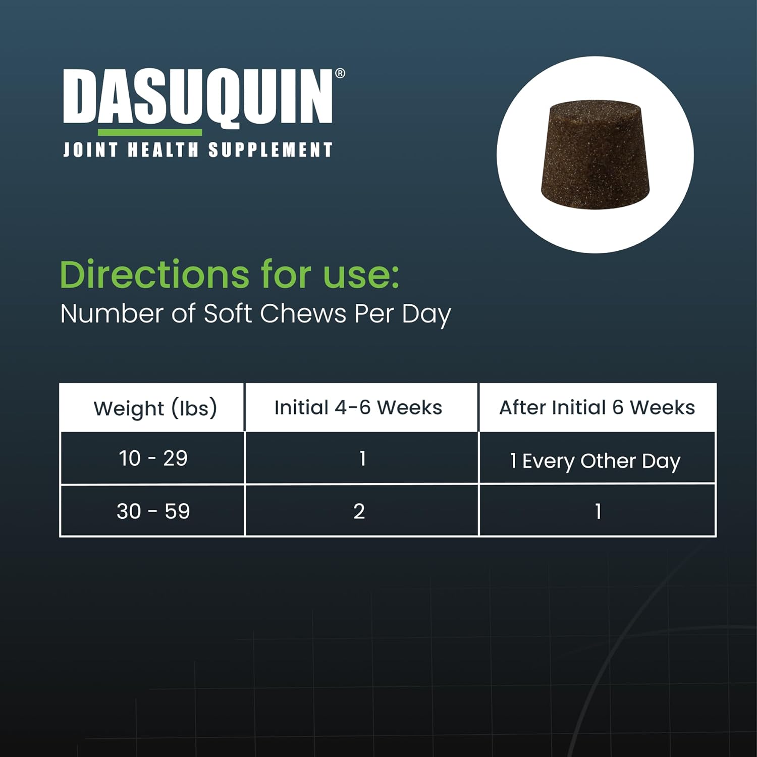 - Tasty Soft Chews for Daily Use - Dasuquin comes in a tasty soft chew, making daily administration easy and convenient.