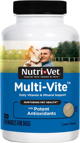 Nutri-Vet Multi-Vite Chewables provides a complete spectrum of vitamins and minerals that complement a dog’s normal diet. Tasty liver flavor chewables make this 'treat' an easy way to promote health and vitality.