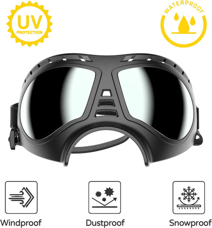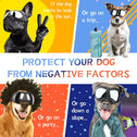 - Correa ajustable: cabeza de 8.5 a 15 pulgadas, correa de barbilla de 7 a 12 pulgadas. Ajusta la longitud de la correa para adaptarse a diferentes formas y tamaños de cabeza, luego entrena a tu perro para que se acostumbre a las gafas.