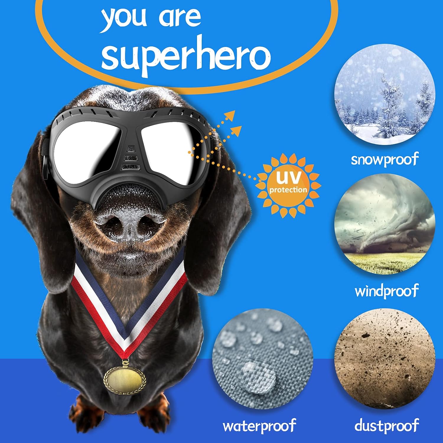 Hecho de marco TPE suave y lentes ultra duras, puede evitar nieve, lluvia, rayos UV, viento y polvo.