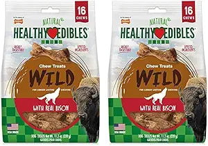 ABOUT HEALTHY EDIBLES Reward and occupy your best friend with Healthy Edibles dog treats! Made with no artificial colors, flavors, or preservatives, these natural dog treats come in many delicious flavors, engaging shapes, and sizes for every dog—even puppies! DOGS GO WILD FOR REAL BISON These tasty dog chew treats resemble real bones and contain delicious bison flavor to indulge your furry friend’s wild side. They’re also made with a highly digestible, limited-ingredient formula featuring protein for an excellent source of nutrients. Whether you want to keep your dog occupied or just reward them with a savory treat, these long-lasting dog chews will keep them satisfied! GUARANTEED YOUR DOG WILL LOVE IT Before we introduce new dog products to furry friends and pet parents everywhere, we make sure our very own dogs love them first! If you’re not happy with your Nylabone chew treat for any reason, simply return it to us with the sales receipt for your money back. Or, reach out to our Consumer Care team so we can help make it right (and talk about how much we also love our dogs). MEET NYLABONE Ever since introducing our very first chew toy in 1955, Nylabone has been helping pet parents take the best possible care of their furry friends. Fast-forward 60+ years and our family-founded company is still trusted for tasty treats, high-quality chew toys, fun play toys, and easy-to-use dental products!