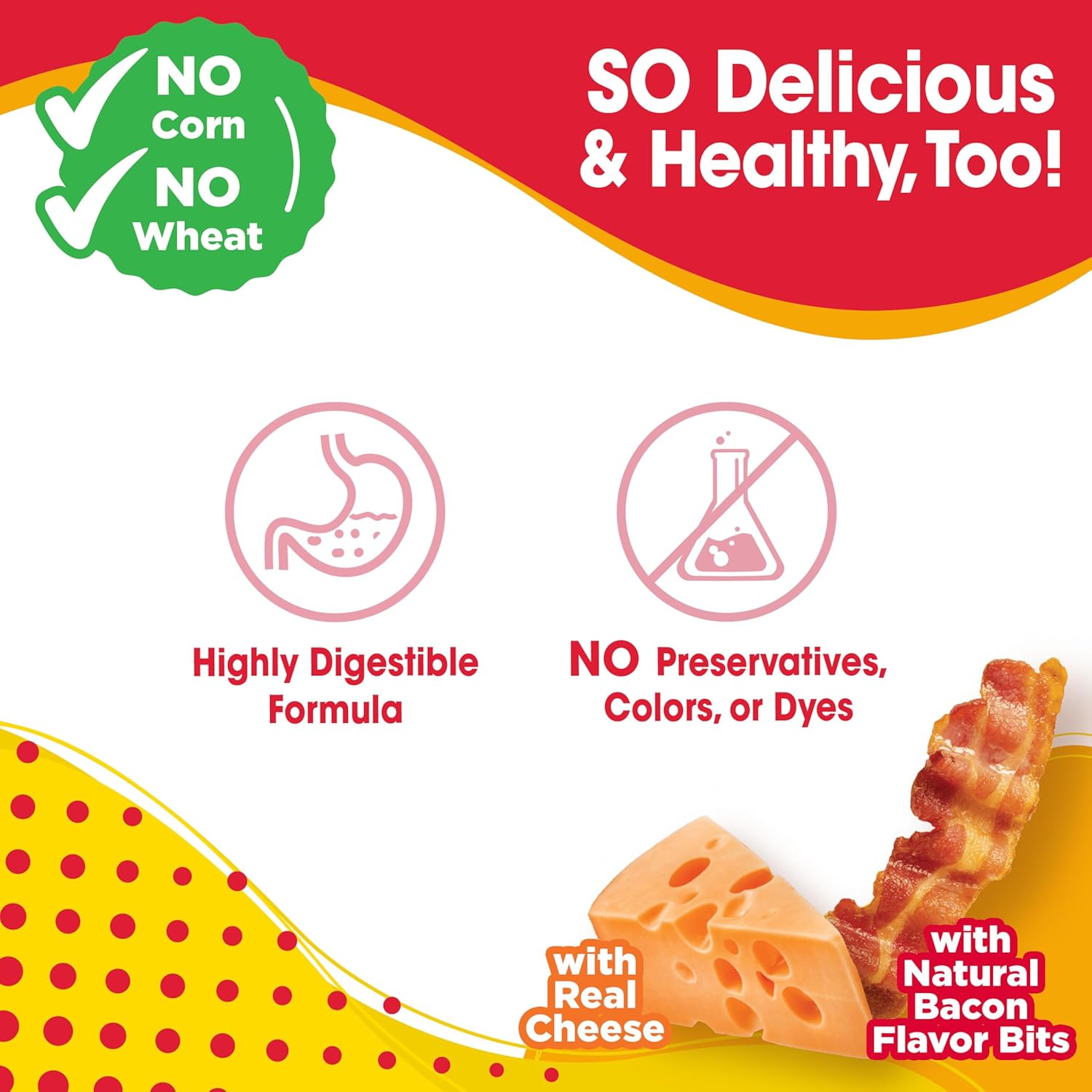 - Made with Real Cheese & Natural Bacon Flavor - Edible small dog bones packed with bursts of mouth-watering flavor to get your dog's tail wagging