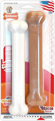 ABOUT POWER CHEW TOYS Made from our toughest nylon material, Power Chew toys challenge even the most extreme chewing styles! These durable dog chew toys for aggressive chewers come in many different shapes and enticing flavors to discourage destructive chewing, help clean teeth, and simply keep dogs happy! THE PERFECT PACK FOR POWERFUL SMALL CHEWERS Our Power Chew Small Dog Value Pack features 3 chew toys to satisfy small, powerful chewers! Each heavy chewer dog toy in this pack is made of our toughest nylon material for long-lasting fun and features enticing flavor infused throughout that dogs simply can’t resist. Plus, these super chewer dog toys help clean teeth and freshen breath as your dog chews! Whether you want to give a dog toy for boredom, to help support your best friend's dental health, or to simply provide a fun activity, these veterinarian-recommended chew toys are made with heart and purpose! NYLABONE CHEWS BEST What your dog chews matters! With destructive behavior among the leading reasons dogs are returned to shelters, we know healthy habits can make a life-changing difference. For 70 years, our family-founded brand continues to safely satisfy dogs’ chewing instincts and help them stay in loving forever homes!