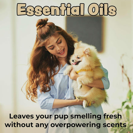 - Our dog shampoo for smelly dogs contains an essential oil fragrance blend that leaves your pup smelling his best without the strong perfume smell.