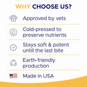 For puppies, omega will help support their underdeveloped immune systems, improve cognitive functions, memory and learning ability, while for adult and senior dogs omega will support skin and coat health while improving mobility, easing inflammations and help with wound healing.