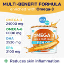 - Nutritional Dog Skin and Coat Supplement with Essential Omega Acids: These Omega for dogs chews, packed with fatty acids, are a superior dog skin and coat supplement. They're perfect for shedding issues and paw licking, promoting a soft, shiny coat.
