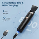 • Built-in Battery: Rechargeable by USB with indicator light, make it more convenient, without changing batteries. This dog hair trimmer can be used for about 2 hours after 70 min of fully charging