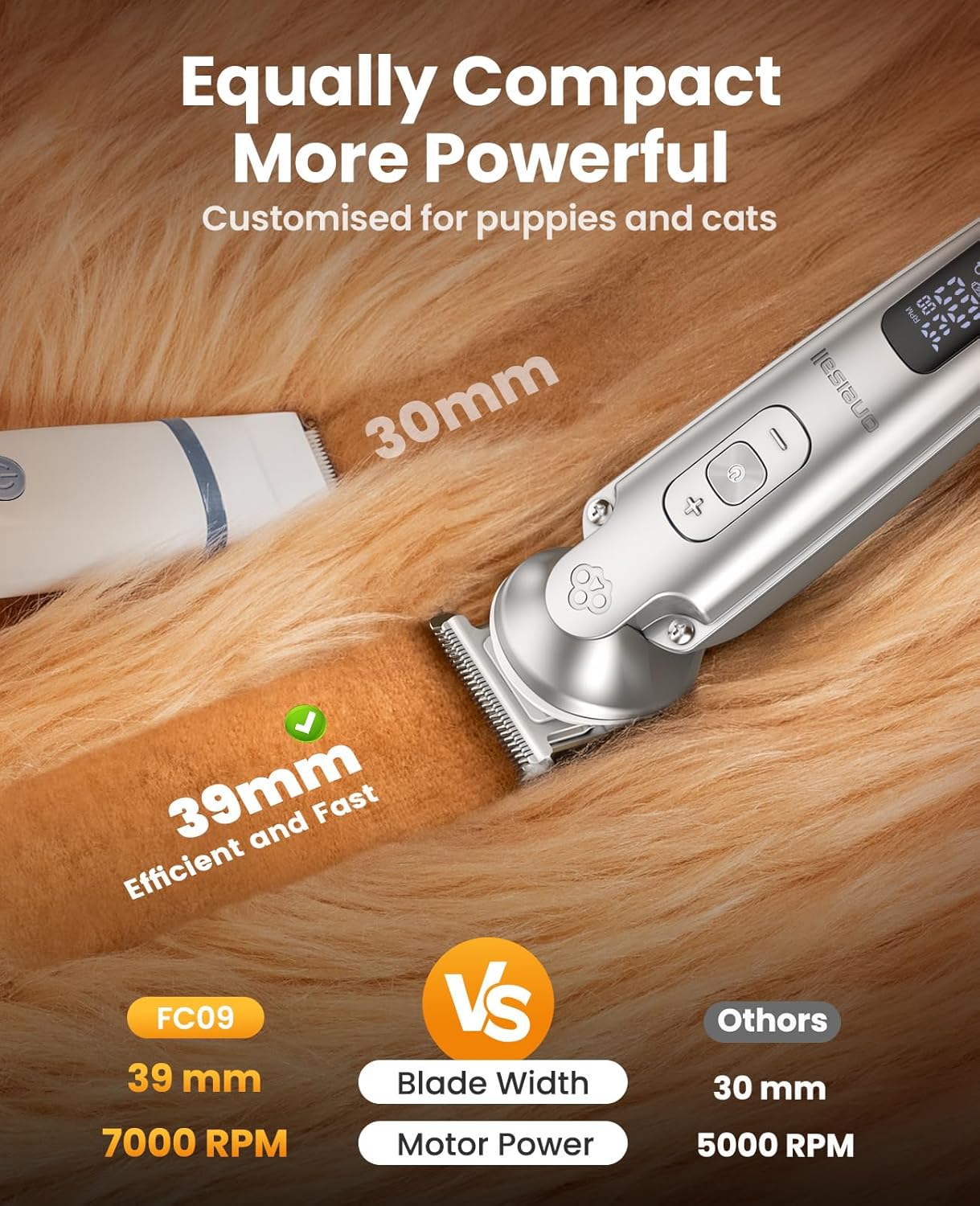 - Eficiente y ahorro de energía: equipado con una batería de gran capacidad de 1400 mAh, ofrece 2.5 horas de tiempo de uso real, suficiente para preparar de 2 a 4 mascotas. Con soportes para usarlo mientras se está cargando, nunca te preocupes por quedarte sin energía
