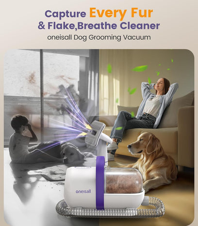 - 𝗼𝗻𝗲𝗶𝘀𝗮𝗹𝗹 𝗗𝗼𝗴 𝗚𝗿𝗼𝗼𝗺𝗶𝗻𝗴 𝗞𝗶𝘁 𝗦𝗹𝗼𝘃𝗲 𝗛𝗮𝗶𝗿 𝗦𝗵𝗲𝗱𝗱𝗶𝗻𝗴 𝗕𝗲𝘁𝘄𝗲𝗲𝗻 𝗦𝗲𝗮𝘀𝗼𝗻𝘀: Traditional home grooming tools often lead to hair flying around, especially during hair shedding between seasons. Never Bother Again, our dog vacuum brush for shedding grooming collects 99% of pet hair into a vacuum canister while brushing, ensuring a clean and tidy home with no more dog hair flying all over